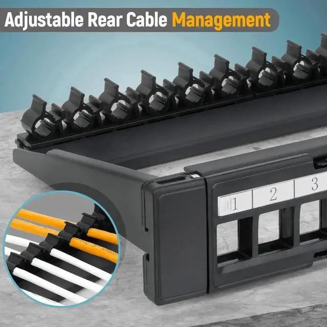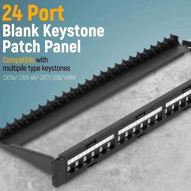 This keystone patch panel can be mounted in 19" racks or cabinets. It has 24 ports in total, which is more than enough to help you organize a group of cables so you can consolidate voice, video, and data cables in a single location.