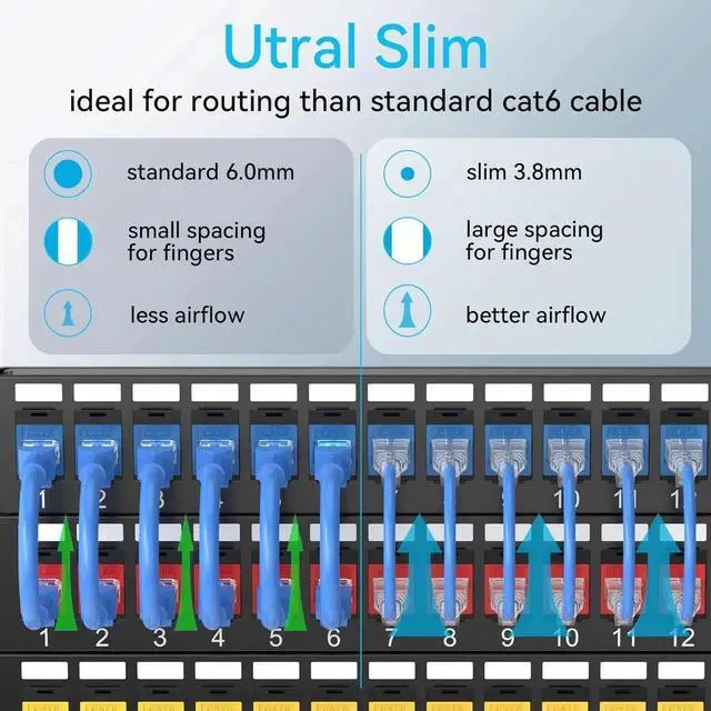 Slim patch cables with various color coding helps to understand what you connect to and for better organization and management. Cat 6 patch cables works together with various colors cat6 keystone.