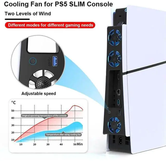 Silent Enhanced Cooling Fan for PS5 Slim Console(Digital/Disc) with Adjustable Speed Efficient Cooling System with USB 3.0 Port