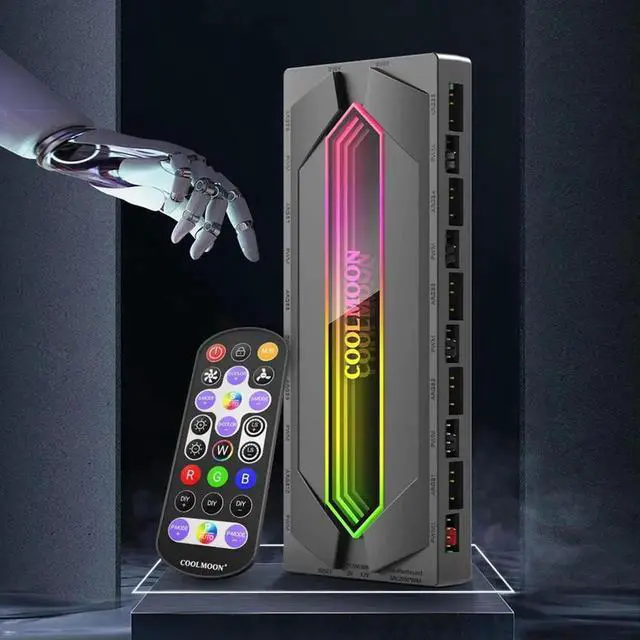 ARGB and PWM HUB PWM Fan Hub Splitter with Remote SATA Power Supply Cable Fan Hub Splitter 5V/3PIN ARGB Case Fan Hub for PC Case