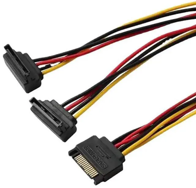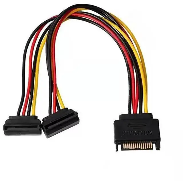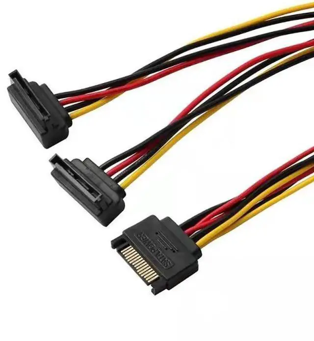 15PIN SATA Line 1 In 2 Outlet Cable Splitter Elbow Cord PC Hard Drive Serial Port Power Supply Wire SATA Plug Adapter Extender