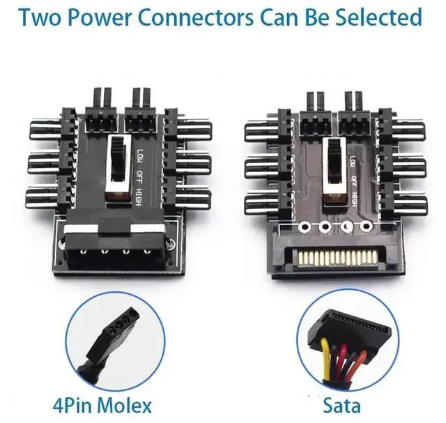 1 to 8 3Pin Fan Hub Pwm Sata Molex Splitter PC Mining Cable 12V Power Suppply Cooler Cooling Speed Controller 4PIN Adapter