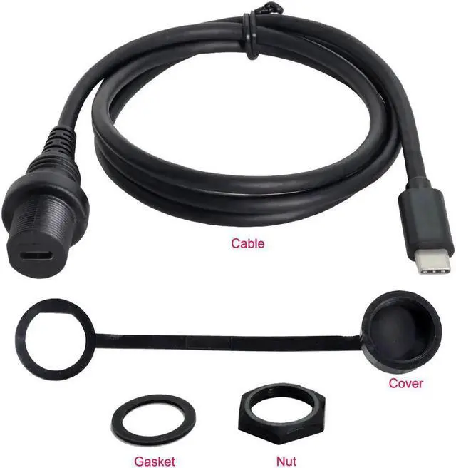 Dustproof Waterproof USB-C Type-C USB 3.1 Extension Flush Car Mount Extension Cable for Dashboard Panel