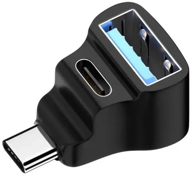 10Gbps USB3.0 Type C Male to Dual Type-A OTG & Type-C Female Power Data Splitter Adapter Angled.
