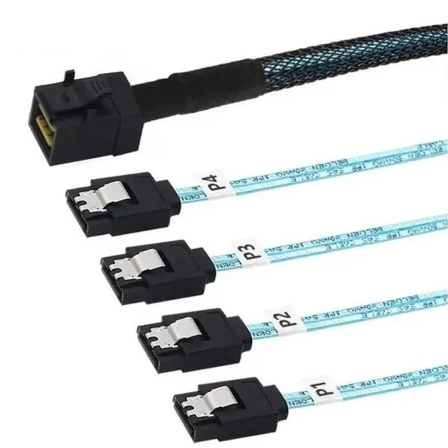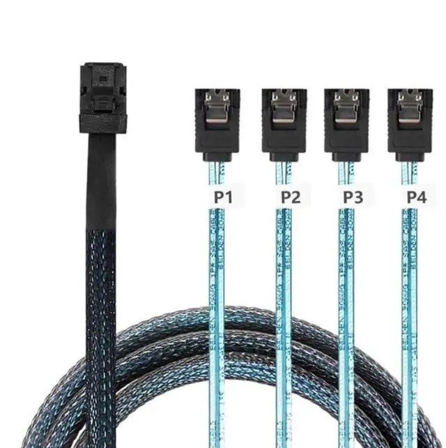 1-to-4 Breakout Cable Design:Converts a single SFF-8643 port to four SATA 7P female connectors, enabling multiple drive connections from one controller.