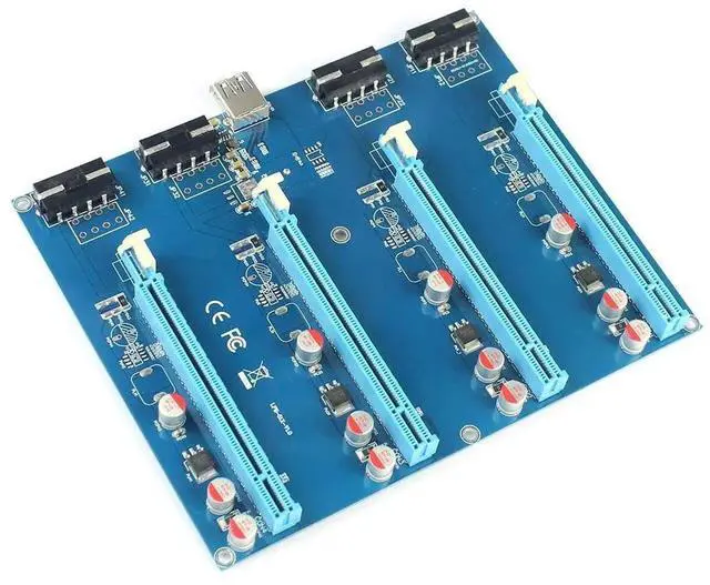 PCI-E 1X to 4 slot 16X riser card with high speed USB 3.0 cable.