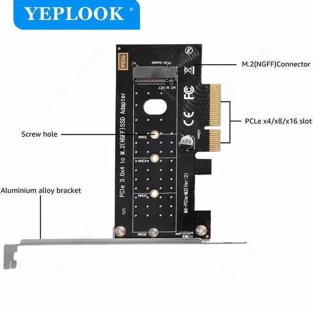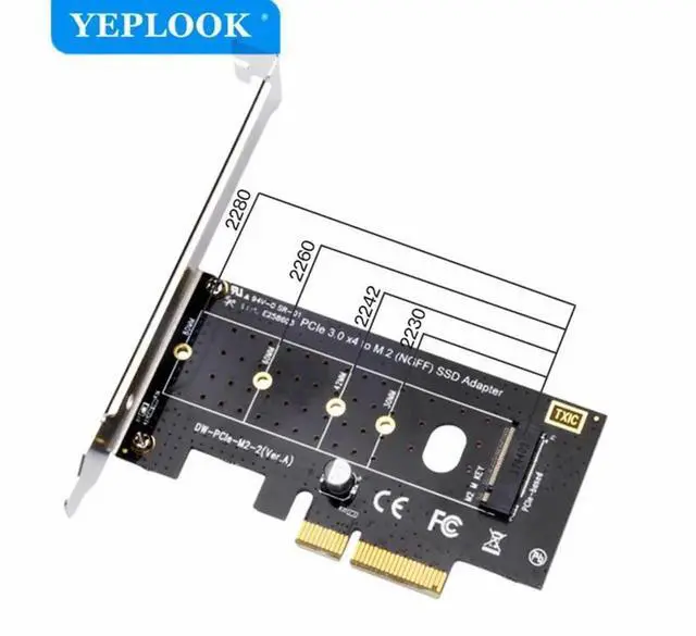 PCIe 3.0 to M. 2 NGFF SSD Adapter for PCIe NVME/AHCI SSD M Key Support X16 X8 X4 22*80 22*60 22*42 22*30 with Low Profile Bracket