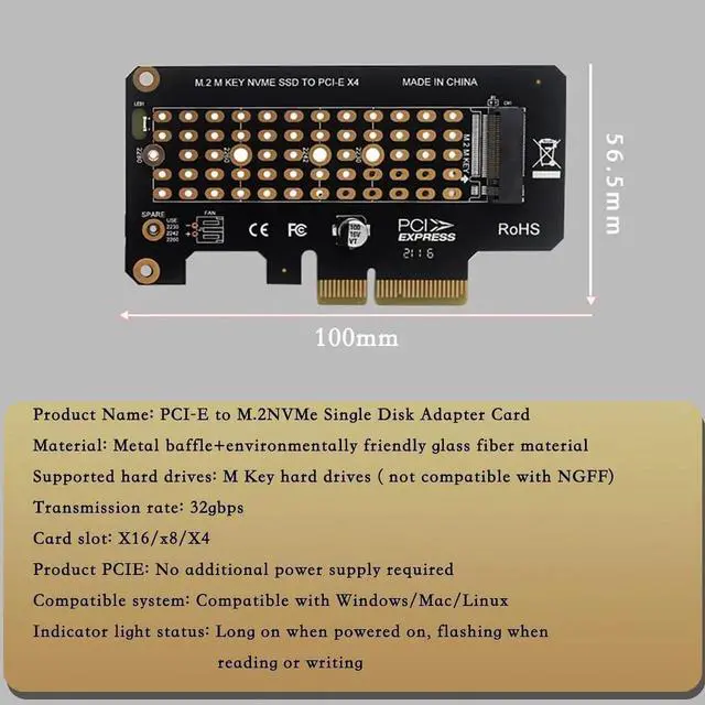 Name: PCI-E to M. 2 NVMe Single Disk Adapter Card