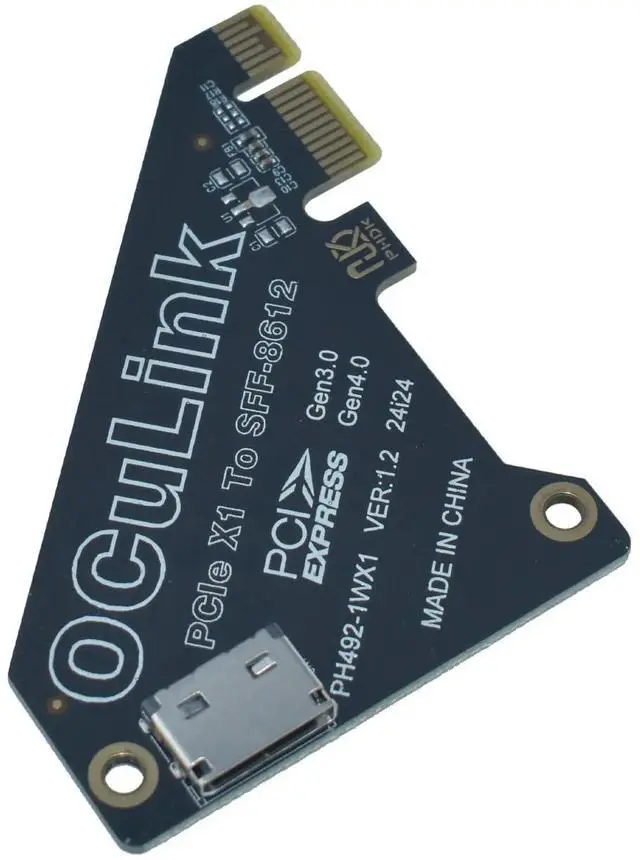Elevate your PC's connectivity with the PCIe 4.0 to Oculink SFF-8612 External Adapter Card. This innovative card adds an additional Oculink SFF-8612 x4 interface via your PCIe x1 slot, seamlessly integrating more devices like NVMe SSDs or eGPUs using a SFF-8611 cable. Experience the freedom to expand your system without limitations.