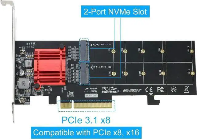 Dual NVMe PCIe Adapter allows you add 2x M. 2 NVMe SSD to Mainboard via a single PCI-e x8 Slot