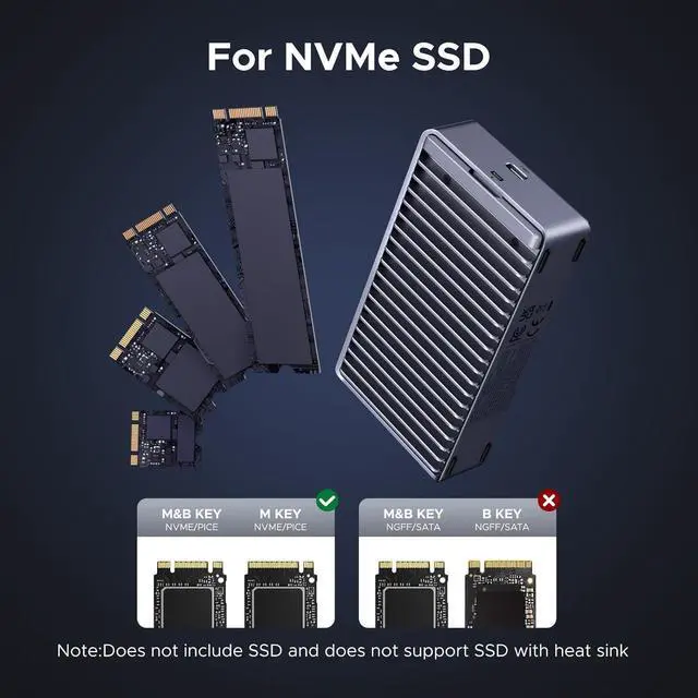 Supports up to 8TB drives: This enclosure is compatible with drives up to 8TB, giving you ample space for work, gaming, and video playback anytime, anywhere. Note: This is a NVMe enclosure only. SSD not included.