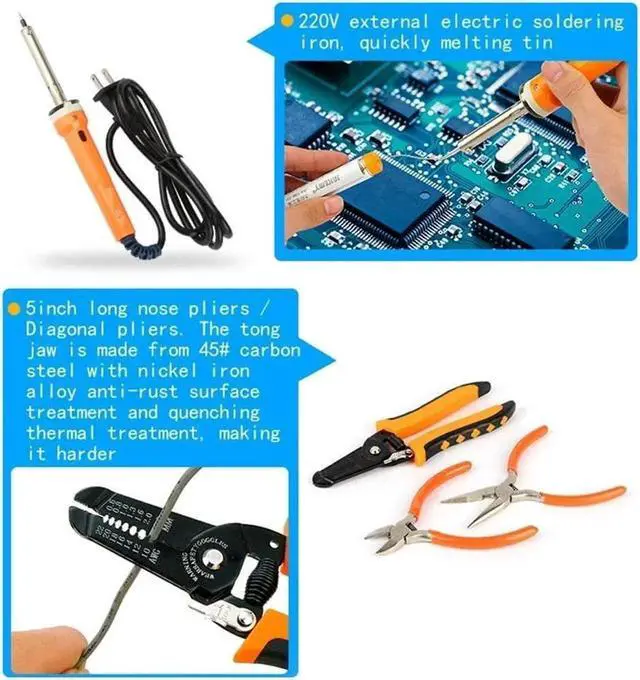 Network Crimp Tool Kit for RJ45/RJ11/RJ12/CAT5/CAT6/Cat5e/8P, Professional Crimper Connector Stripper Cutter, Computer Maintenance Lan Cable Pliers Tester Soldering Iron Set