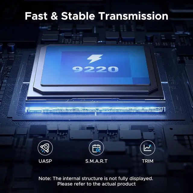 Secure & Stable Connection:Featuring UASP and TRIM support, plus an advanced RTL9220 chip with short-circuit and over-current protection, this enclosure ensures safe, stable data transfer. The aluminum case adds extra protection from accidental drops