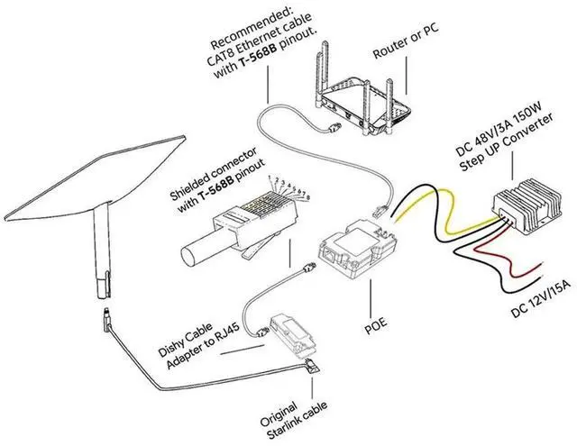 CB1 Antenna Adapter For Starlink V2 DISHY Cable Adapter To RJ45 For Starlink 12V 24V Conversion Cable And Connection