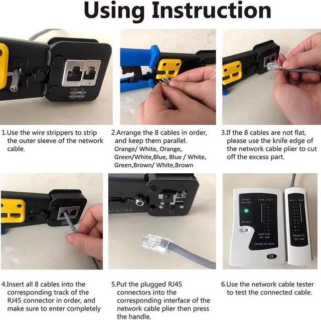 Crimping For RJ11 RJ12, RJ45 CAT5e, shielded CAT5e, CAT6 modular plugs connectors. Designed for use with telephone lines, alarm cables, computer cables, intercom lines, speaker wires, and thermostat wiring Scanning Function - Find out working wire (network cables, phone lines, coaxial cable, buried cable and even cable behind wall)