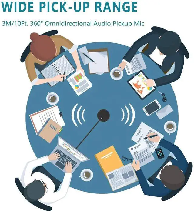 - [Excellent Pick-up Performance] This mic has an excellent 360° omnidirectional audio pickup range, which can pick up your voice from 3m/10ft away. You don't have to speak up to the computer or laptop, let alone repeat what you say over and over again, just go on a normal conversation, like talking face to face.