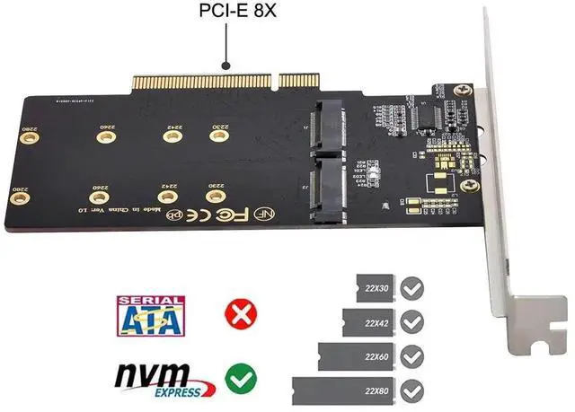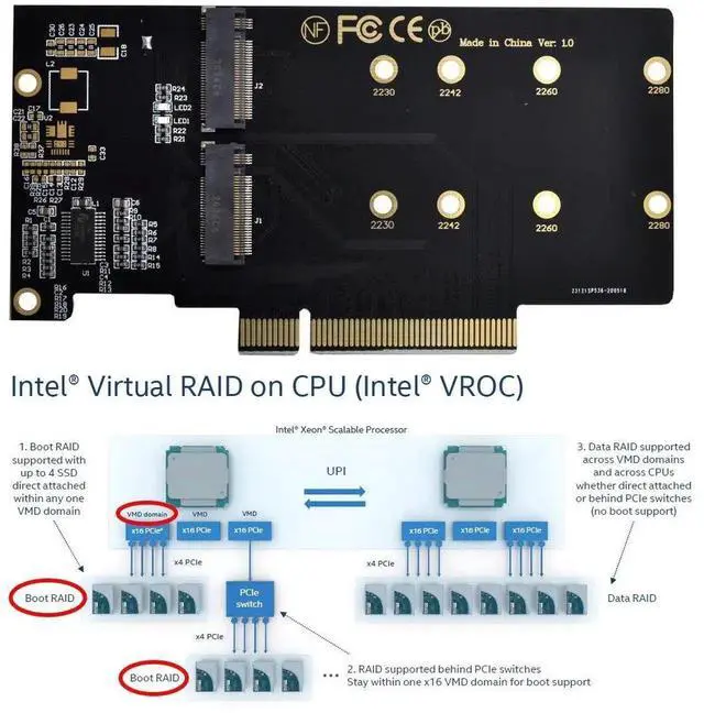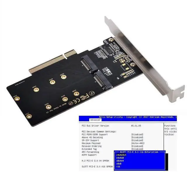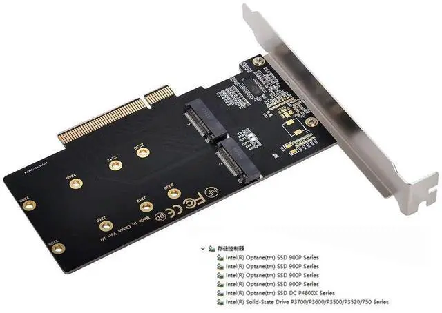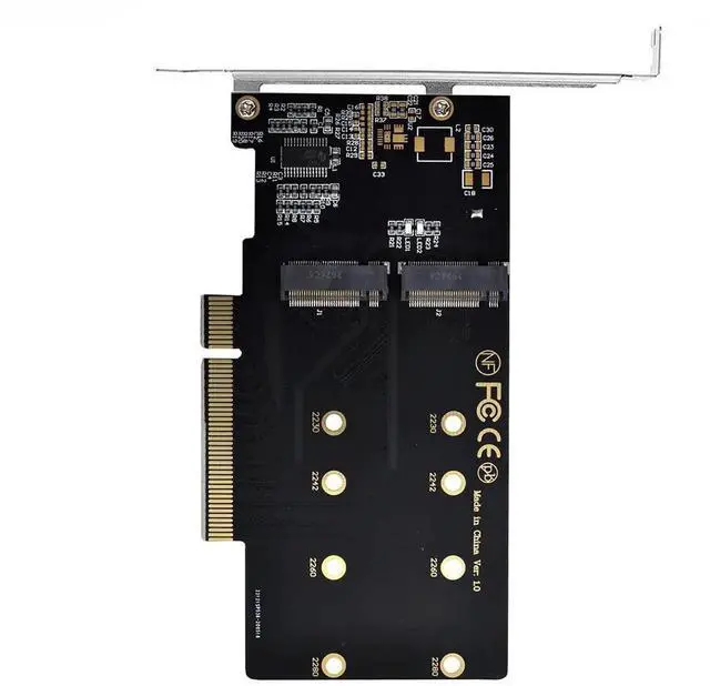 2.Only supports motherboards with detachable PCI-E channels.Control the operation of two disks based on the motherboard PCIE channel,The motherboard without PCIE signal split can only recognize one disk.