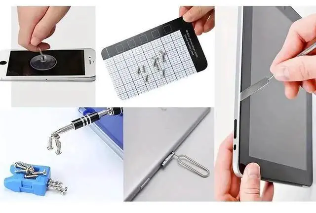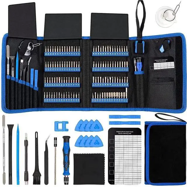 - [Magnetic Design]This professional tool set has 2 magnetic tools, help to save your energy and time. The 5.7*3.3" magnetic project mat can keep all tiny screws and parts organized, prevent from losing and messing up, make your repair work more efficient. Magnetizer demagnetizer tool helps strengthen the magnetism of the screwdriver tips to grab screws, or weaken it to avoid damage to your sensitive electronics