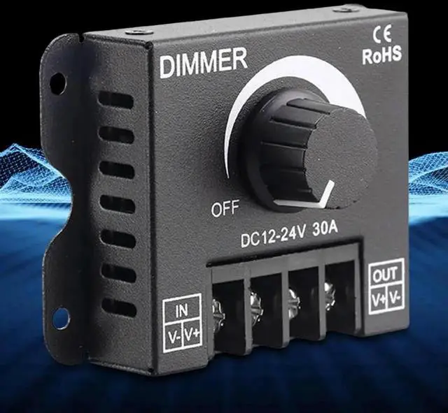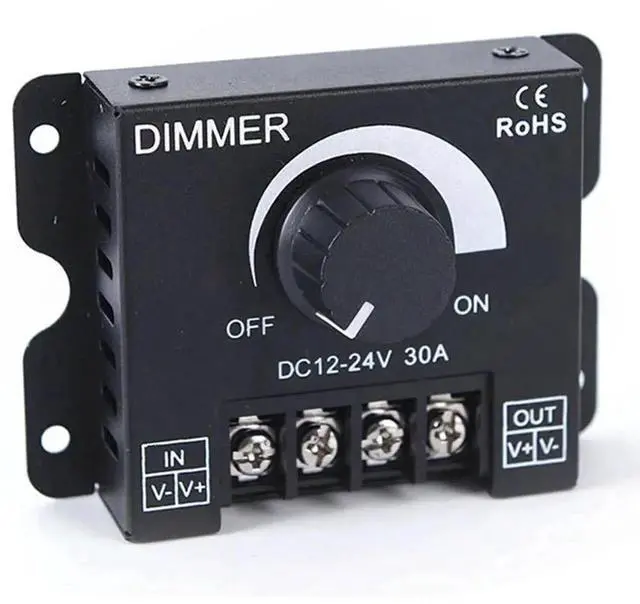 LED Dimmer 30A DC12V 24V 360W Knob Adjust Brightness LED Dimmer Switch LED Light Strip Dimmer for Single Color LED Light Strips