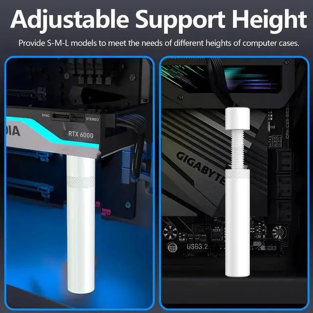 Vszerda Graphics Card GPU Support Bracket, Adjustable Height GPU Sag Bracket with Magnet & Non-Slip Sheet, GPU Brace for Prevent Universal Graphics Card Sag, L