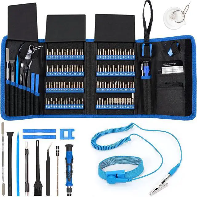 Wide ApplicationThis precision screwdriver set has 120 bits, complete with every driver bit youll need to tackle any repair or DIY project. In addition, this repair kit has 22 practical accessories, such as magnetizer, magnetic mat, ESD tweezers, suction cup, spudger, cleaning brush, etc. Whether you're a professional or a amateur, this toolkit has what you need to repair all cell phone, computer, laptops, SSD, iPad, game consoles, tablets, glasses, HVAC, sewing machine, etc