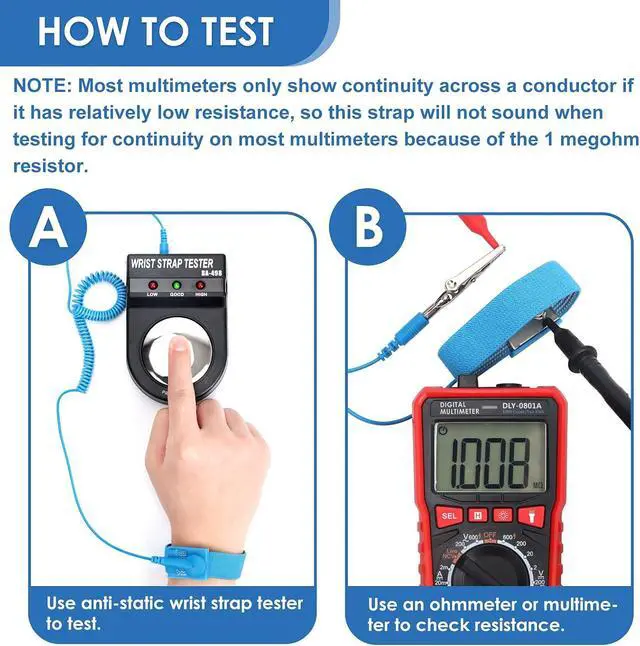 ESD Safe ToolThe STREBITO anti static wristband has a built-in 1 M resistor, which protects your electronic components from accidental electrostatic discharge (ESD) damage during repairs. Anti static bracelet eliminates static electricity from human body in 0.1s to equalize the charge between your hand and the electronic devices