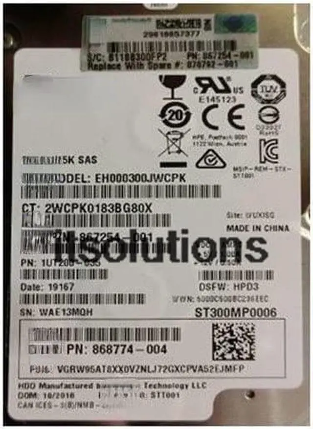 For HP 870753-B21 300GB SAS 12G 15K SFF 2.5 870792-001