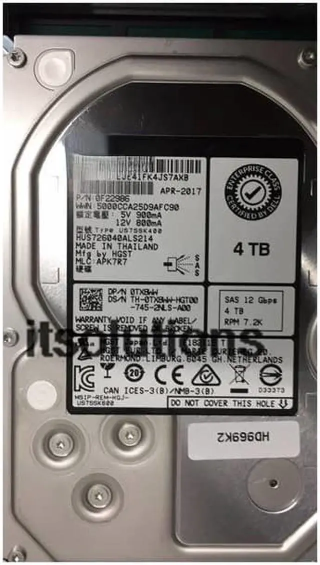 For Dell 4TB (HUS726040ALS214) 12GB 7.2K Server Storage Hard Drive 0TX8WW