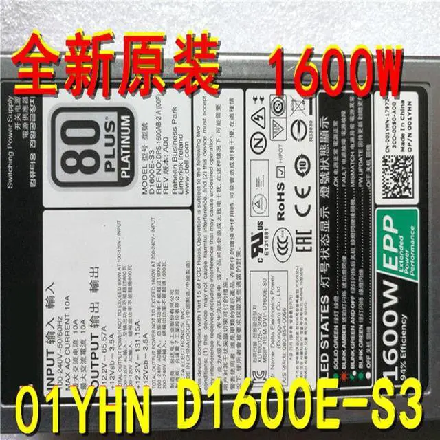 For Dell 1600W Switching Power Supply D1600E-S3 DPS-1600AB-2 A 01YHN