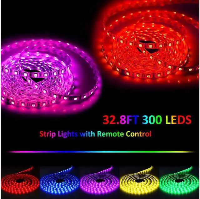 Dimmable LED Strips LED Strip Lights has 600 5050 SMD RGB Leds in 32.8 ft with dimmer and brightness controls. DIY Design Tape lights can be cut every 3 LEDs along the cutting mark. Without damage to the rest strips.