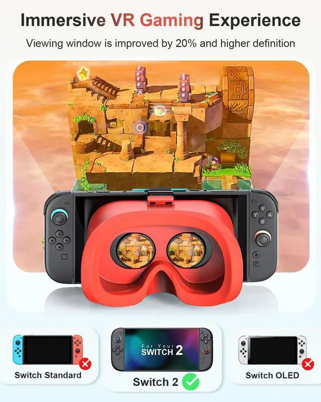 Compatible with Switch 2: This VR headset is specifically designed for Nintendo Switch 2. For a more comfortable experience, it is recommended to remove the Joycons controllers to reduce the device's weight. (Note: Not compatible with Switch/Switch OLED/Switch Lite Models)