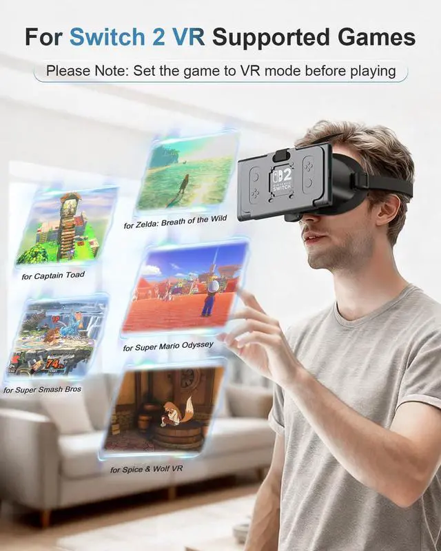 Supports Certain VR Games: The VR glasses only compatible with mario odyssey, breath of the wild, super smash bros, and captain toad. Enjoy VR mode and even watch immersive VR videos on YouTube through your Switch 2 (Note: Set the game to VR mode before playing)