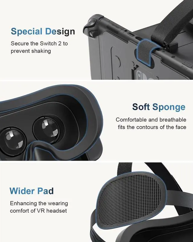 Compatible with Switch 2: This VR headset is specifically designed for Nintendo Switch 2. For a more comfortable experience, it is recommended to remove the Joycons controllers to reduce the device's weight. (Note: Not compatible with Switch/Switch OLED/Switch Lite Models)