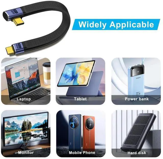 short flat usb c cable 40Gbps for phones, laptops, pc