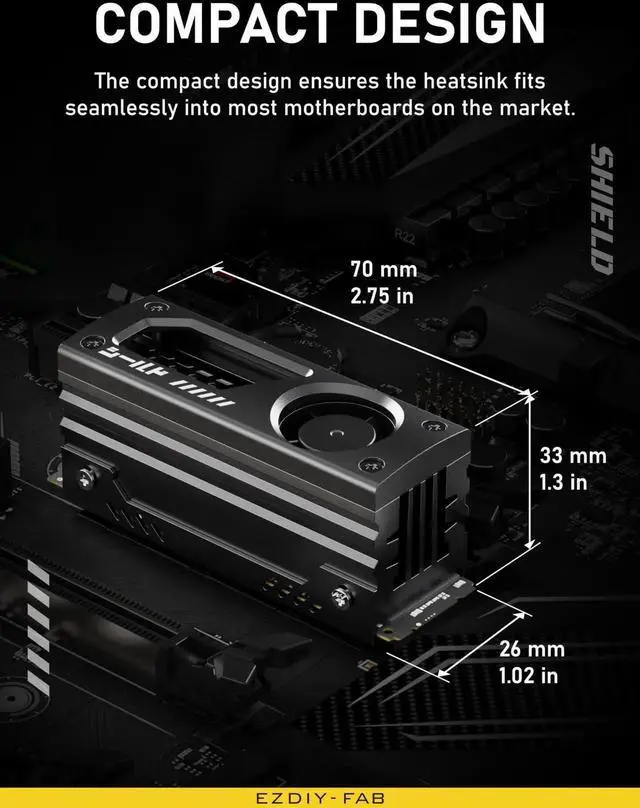 Shield M.2 SSD Heatsink with build-in 20mm PWM Fan, Premium Aluminum Design, High-Performance SSD Cooler for M.2 2280-Black-1 Pack