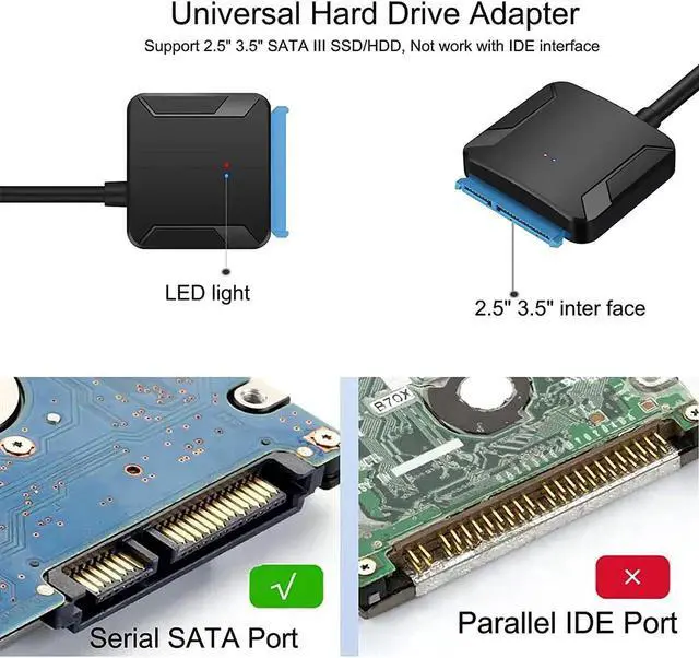 The USB 3.0 to SATA adapter cable allows you to connect a 3.5"/2.5" SATA SSD HDD with your computer or laptop to expand storage, upgrade the system, back up files, retrieve and recover data, and transfer data. It transforms the old internal hard drive into an external drive, It is awesome for booting up old spare hard disks and recovering important files of broken PC, I think you will gratifying to see photographs and videos hadn't seen in years and which brought back great memories.