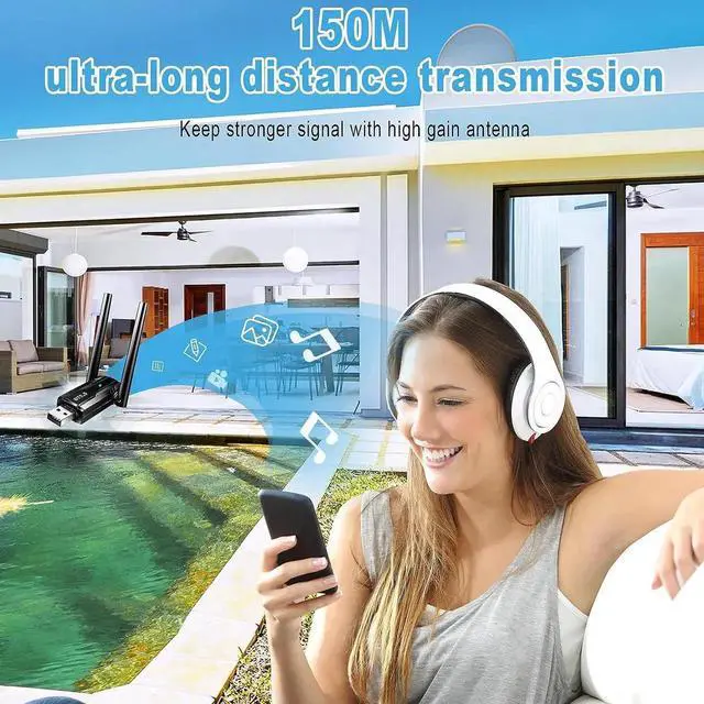 USB Bluetooth 5.3 Adapter for PC, Long Range Bluetooth Dongle 492FT/150M Wireless Transfer Transmitter Receive, USB Bluetooth Adapter Plug & Play for Desktop Laptop PC with Windows 11/10/ 8.1 /7