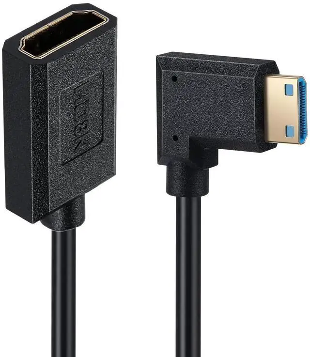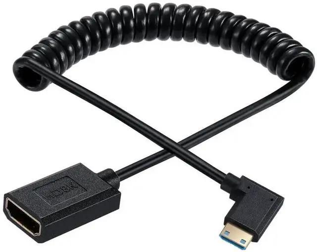 Qaoquda Mini HDMI to HDMI Coiled Cable, High Speed HDMI 2.1 Female to Mini HDMI Male 90 Degree Angle Spiral Adapter Cord 8K 60hz K 120Hz for Camera, Camcorder, Monitor TV, PC and More