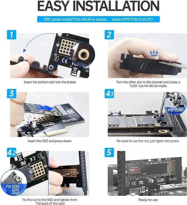 Note: This product cannot be connected to the PCl interface, otherwise it will damage your express card, SSD and motherboard! ! !