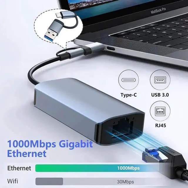 USB 3.0 to Ethernet Adapter with USB C to RJ45 Gigabit LAN 1000 Mbps Wired Network - Ethernet adapter can reliably establish a LAN connection.
