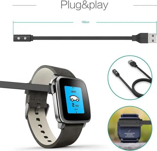This USB 2.0 cable connects your smart watch to your computers USB port for charging. Or you can connect to the USB Power Adapter for convenient charging from a wall outlet.*