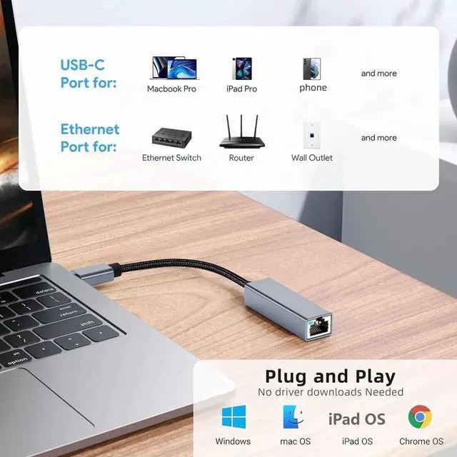 No driver or adapter is needed, just plug the adapter into the USB-C port of your computer and be ready for full-speed internet surfing.