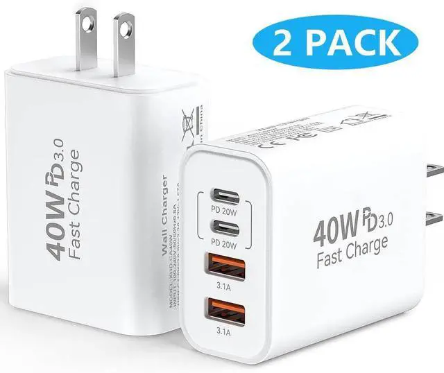 ![Alt view image 5 of 7 - DIXSG [2 PACK] USB C Wall Fast Charger Block, 40W 4-Port Type C Charger Fast Charging Blocks PD Power Charger Adapter + QC 3.0 USB Multiport Charger Brick for i-Phone, i-Pad, Android Smartphones](https://c1.neweggimages.com/productimage/nb640/C00FS25122308EFIP8E.jpg)