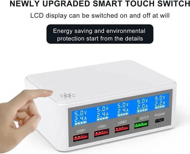 With touch design, the LCD screen can be easily turned on and off by just swiping the touchpad. Whether you're a business person, a student or someone who likes to charge your phone or pad before bed, you'll appreciate all that a usb C charging station has to offer!