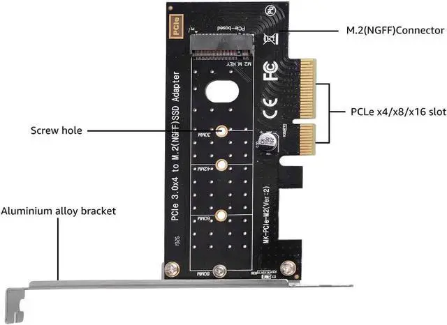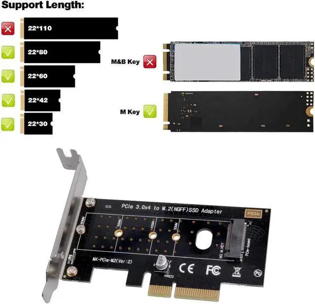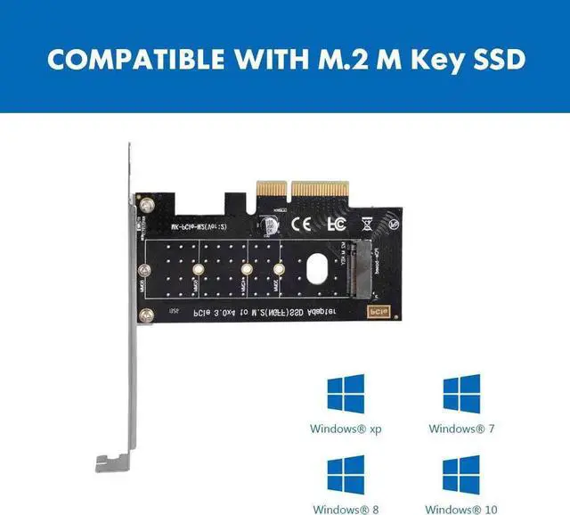 The PCI express M.2 adapter supports Windows 7 / 8 / 10, no driver required. Suitable for 2230 2242 2260 2280 solid state drive