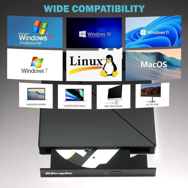 Wide Compatibility: The external blu-ray drive has been designed to be fully compatible with a wide range of operating systems. It has support for Windows 10, 11, XP, and Vista as well as Linux, and all versions of MAC OS 10 or higher.
