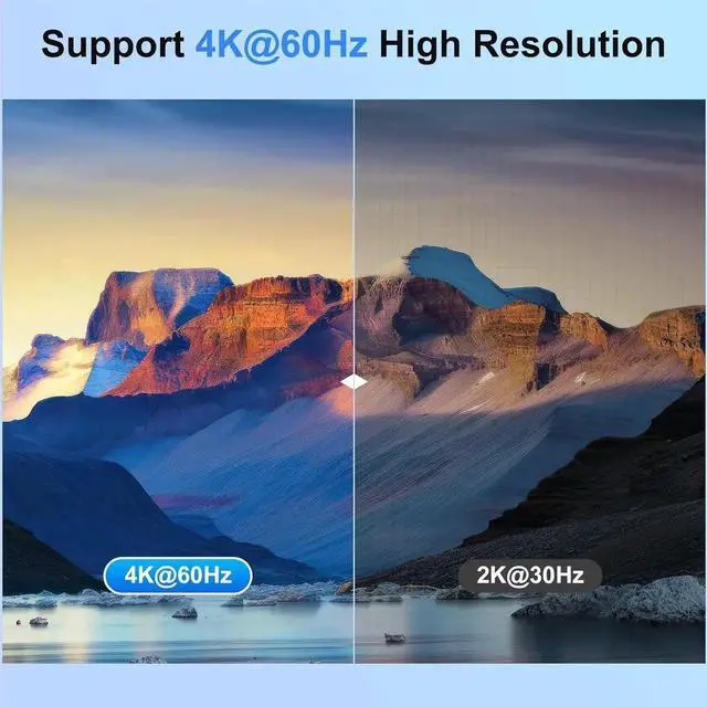 HDMI2.1 + DP1.4Hdmi display port dual monitor kvm switch supports stunning 4K@60Hz resolutions with full backward compatibility. Experience true-to-life visuals with vibrant colors for an immersive viewing spectacle. Fully compatible with various resolutions including 4K@60Hz, 1440P@60HZ,3D, and 1080P for versatile display configurations. Note: if you need a 4K resolution , please use version 2.0 HDMI cable and make sure your computers and monitors support 4K !