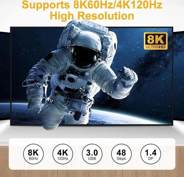 8K@60Hz Dual Monitor KVM Switch (DP+DP) 4 computers share 2 monitors and USB 3.0 devices