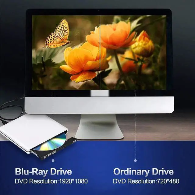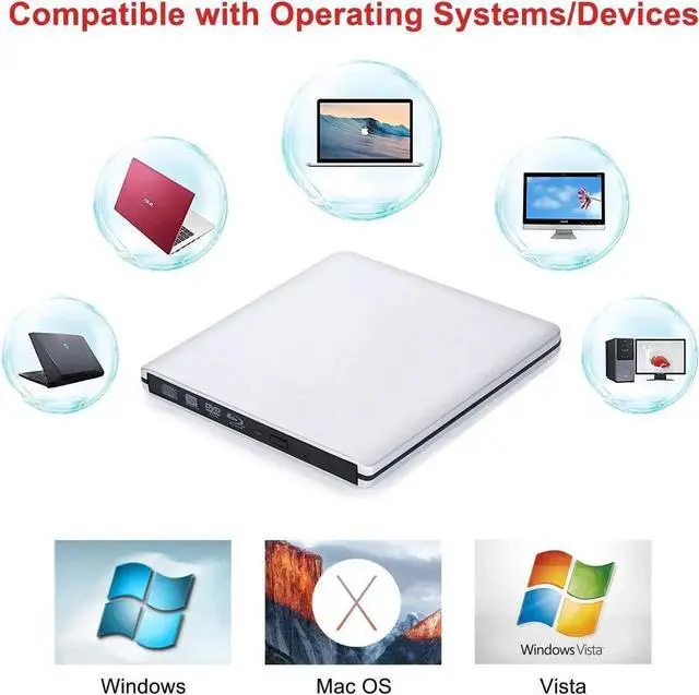 External Blu Ray DVD Drive, USB 3.0 Burner Slim Optical Portable Blu-ray CD DVD Reader Writer RW Player for Laptop Desktop MacBook OS Windows 7 8 10 PC iMac Laptop (Silver)
