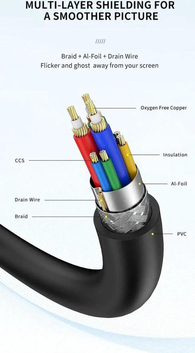 Gold Plated Connectors for Optimal Conductivity, Oxygen-Free Copper Conductor for Antioxidation, PVC Jacket for Durability